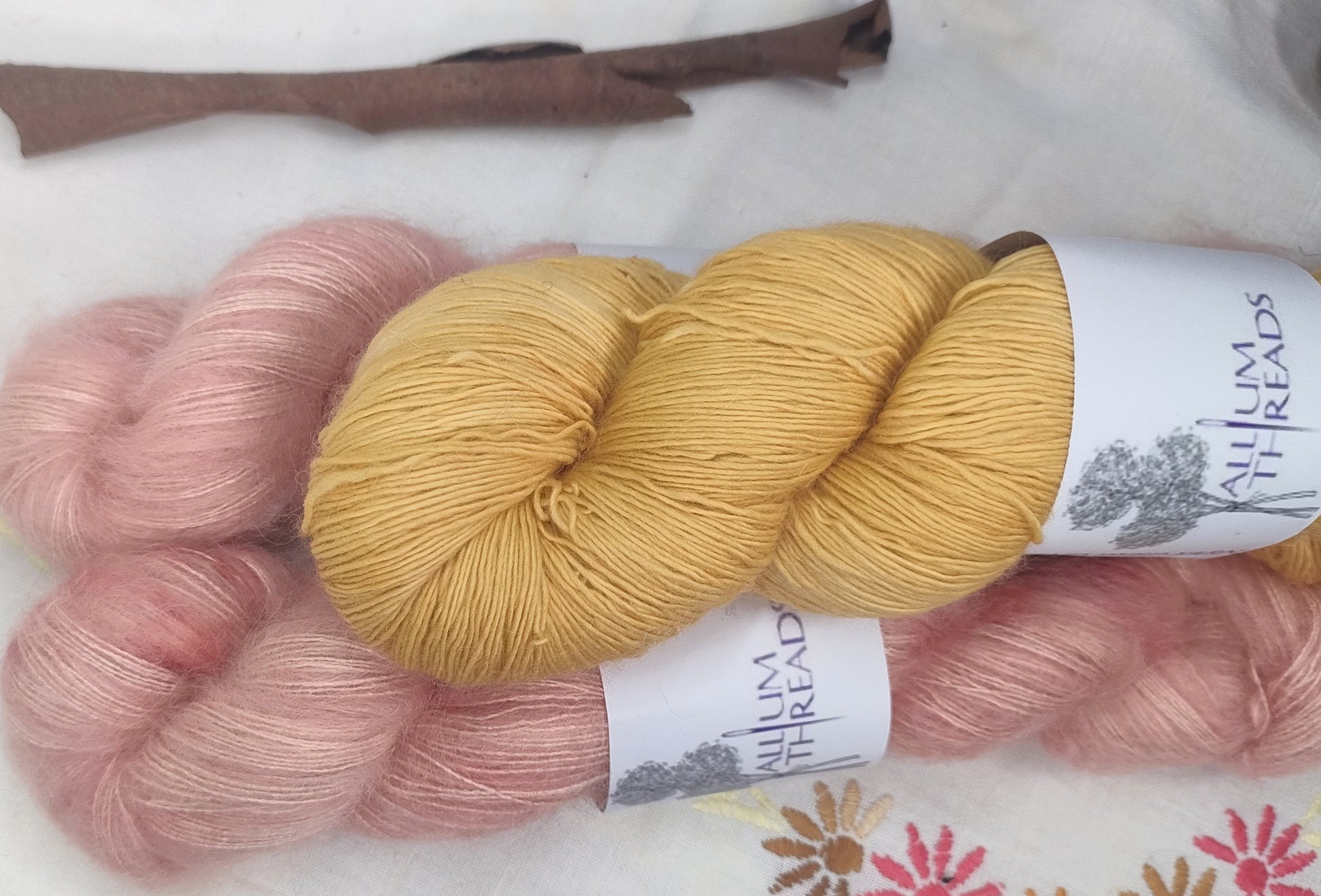 The yarn has been hand dyed with natural dyes.
