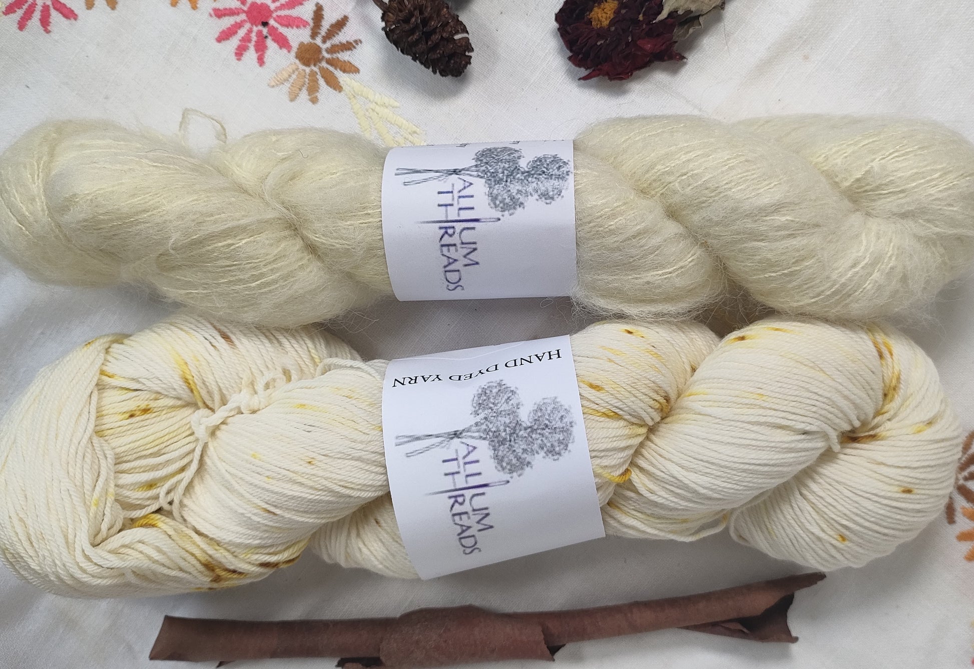 The yarn has been hand dyed with natural dyes.